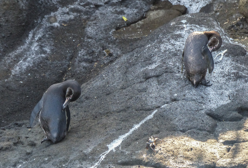 Two Galapagos Penguins preen after a dip in the cool waters of the Humboldt current
