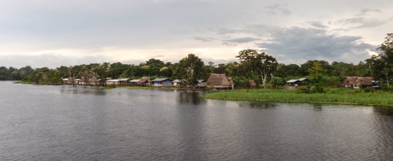 Stopping to visit the village of Bolivia, where the Cacoma people who help look after the reserve now live
