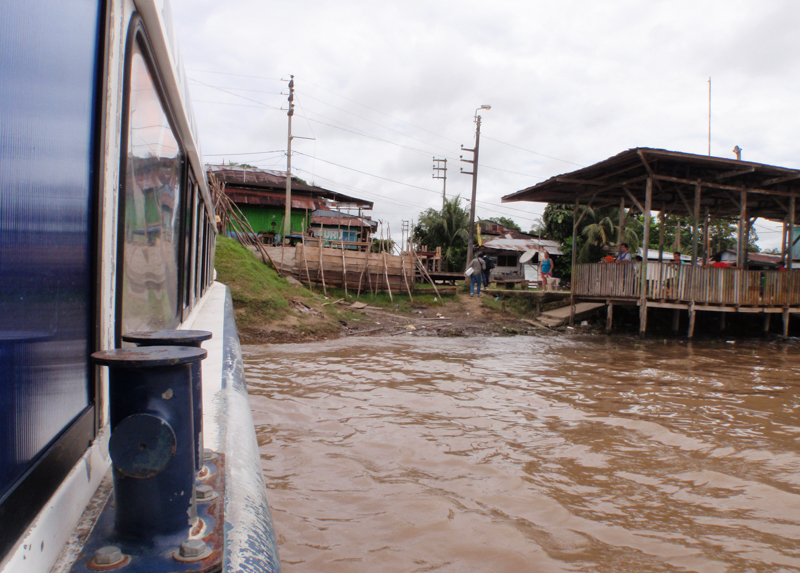 On the speedboat down river – it made regular stops on the way and people came through from the door at the front end selling newspapers, snacks, drinks etc.
