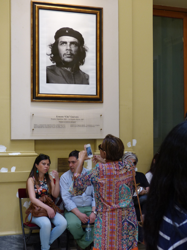 A visitor takes a picture of a picture of Che Guevara