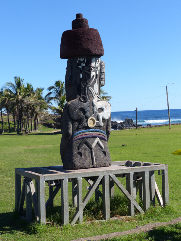 A restored and decorated Moai that has travelled the world, promoting the Rapa Nui culture