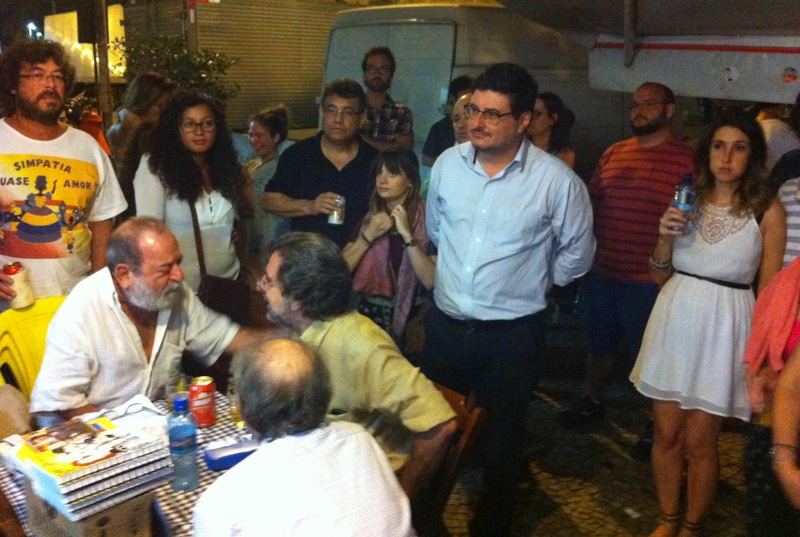 Punters gather on the pavement outside to listen while Alfredo keeps count of how many cans of beer they drink