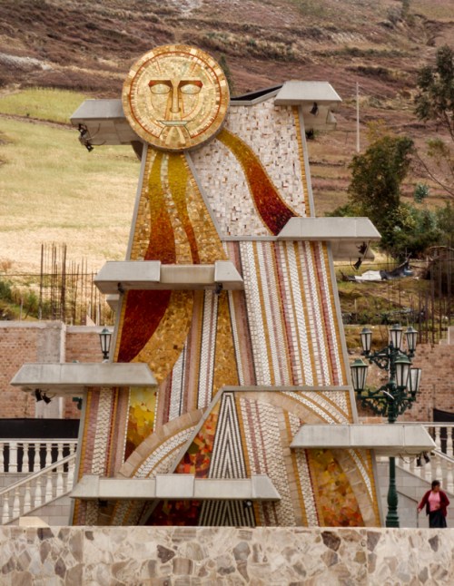 Further up the road, the village squares each had impressive statues, like this one celebrating the sun, also on the mosaic theme: