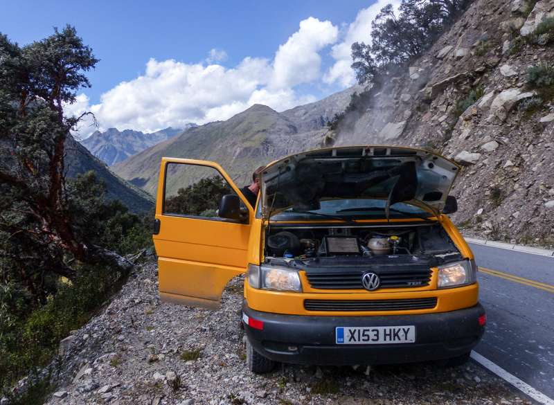 Giving the engine a chance to cool down every 10 – 15 mins or so of climb up over the pass back over the mountains