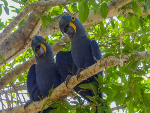 A pair of Hyacinth Macaws ask us to turn the heat down in the Pantanal, Brazil