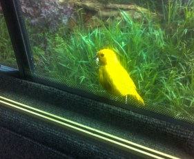 Another yellow bird confused by the yellow van – an Orange-fronted Yellow Finch tried to give us some nesting material in Colombia. The windows are blackened so it couldn’t see us!