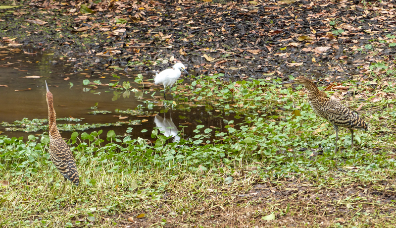 Pinnated Bitterns are usually hard to see. These two were in a hotel grounds! I think they are not juvenile Tiger-Herons because their legs were yellow…