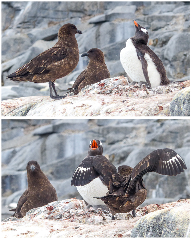 We watched this Gentoo try and defend her chick from these two skuas…
