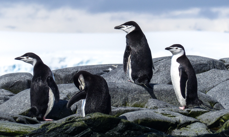 These are male Chinstrap Penguins. They don’t breed in the Antarctic itself