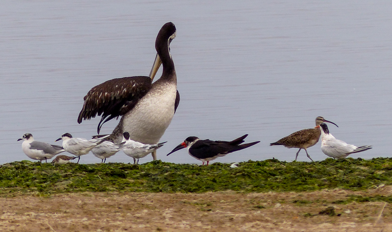 Pelican, Skimmer and a Long-billed Curlew (?)