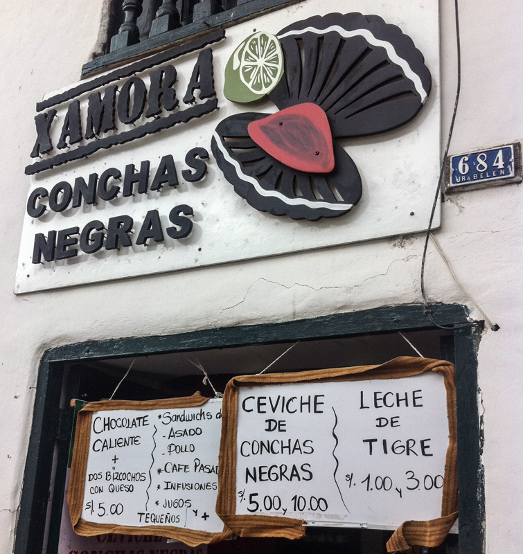 It was a little surprising to find a shop specialising in black oyster ceviche here, as black oysters are a speciality of the north coast of Peru