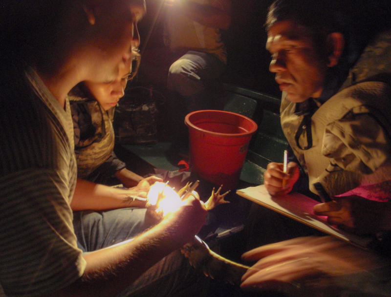 An evening caiman survey – each one caught was examined and measured