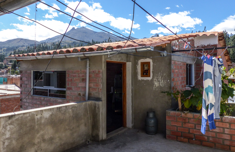 Our little “penthouse” rental apartment in a suburb of Huaraz near the garage didn’t look too promising on the outside!