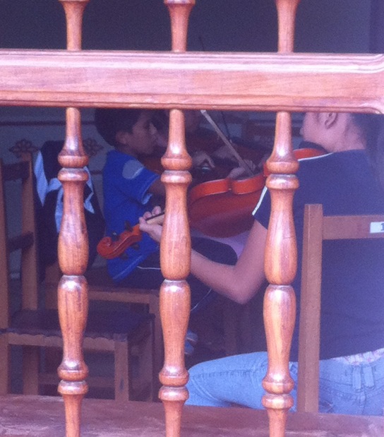 Glimpsing a violin lesson through an open window