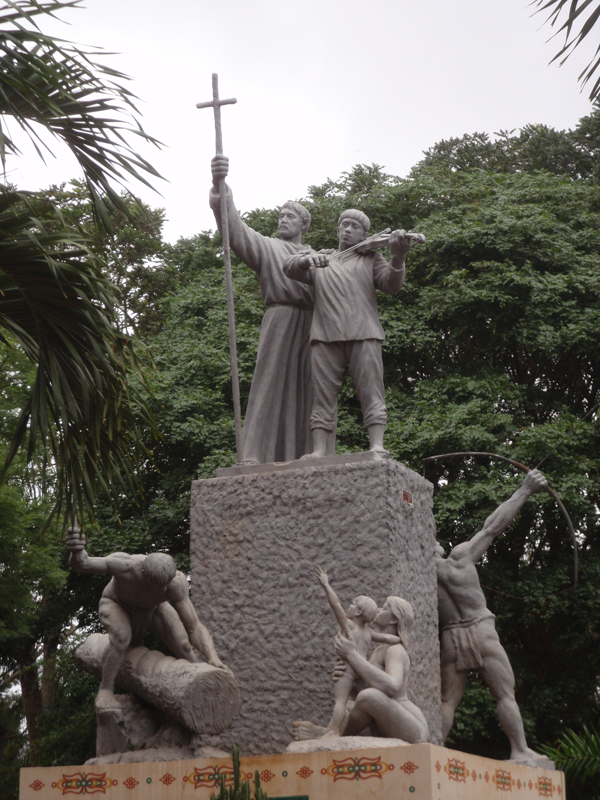 This statue in San Ignacio sums up what the Missions were all about