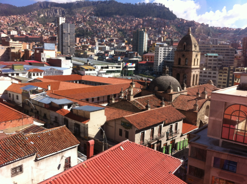 The view from our 5th floor hostel room over the roof of the church of San Francisco