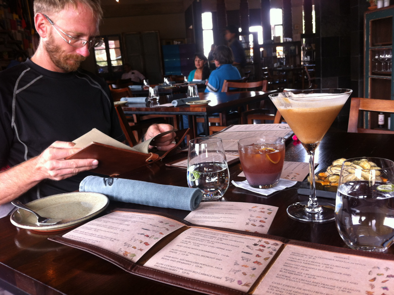 The important matter of menu study with aperitif at the wonderful restaurant Gustu