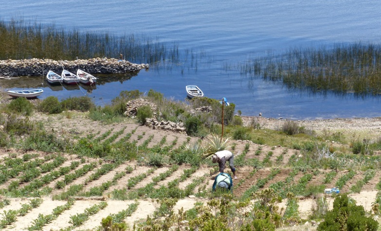 All the hillsides around the lake are heavily terraced and it’s a hard life tending these fields by hand