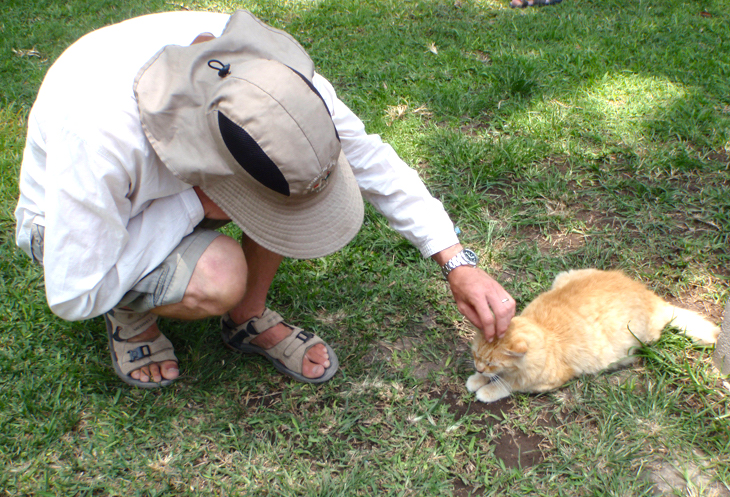 Bruce getting a dose of cat, which the cat appears to be tolerating – typical cat!