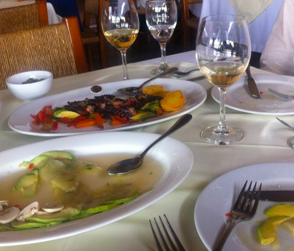 Vegetable tiradito (lovely) and unable to resist yet more beautiful octopus