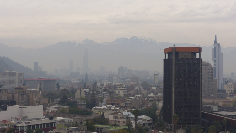 Looking towards the financial district and the Andes beyond – through the smog!