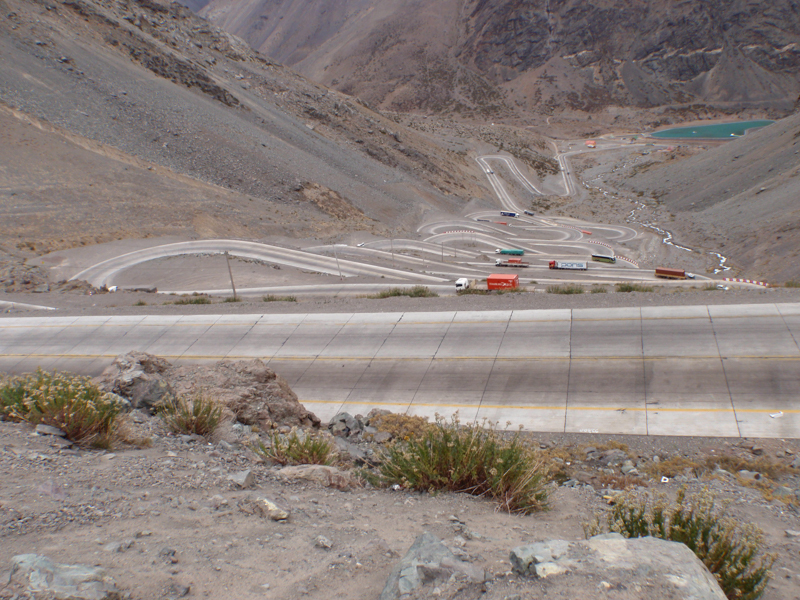 The dramatic switchback climb up to the Paso de Los Libertadores from Chile