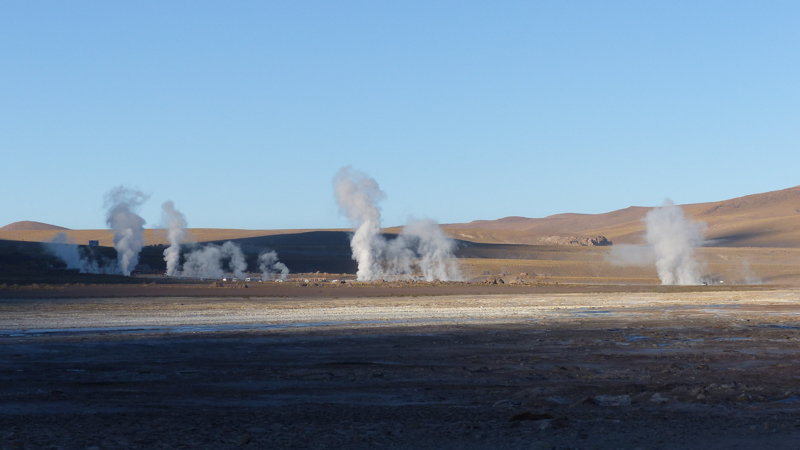 We spent the night parked out of the wind by the visitor office at the entrance to the geysers, ready to head in at dawn, when they are most active