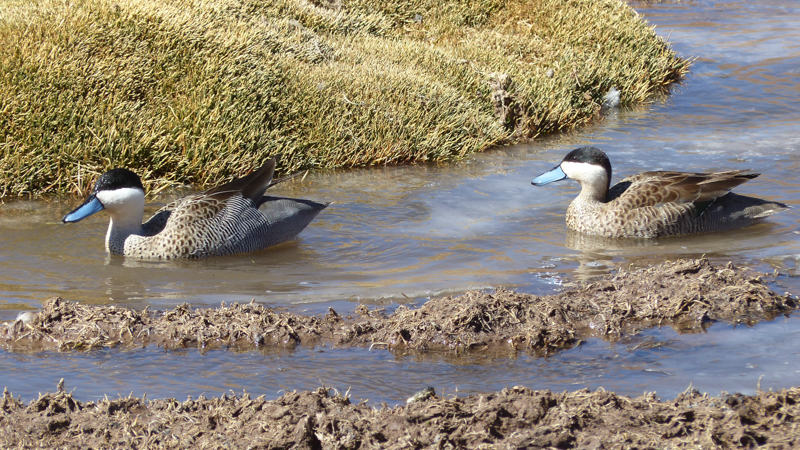 Puna Teals, with wonderful blue beaks