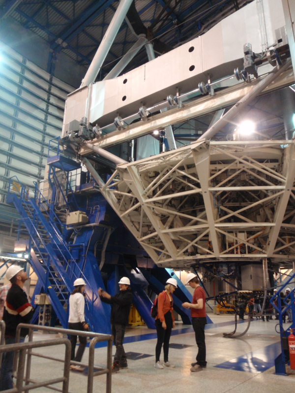Inside one of the six large telescopes – four of the large ones carry out the research, with the other two on constant mapping programmes. Four smaller ones also on site support the large telescopes.