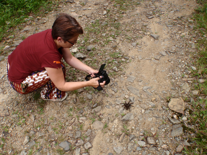 An encounter with a tarantula on the old Gracioso road – but how to move it out of the way so we could drive on?