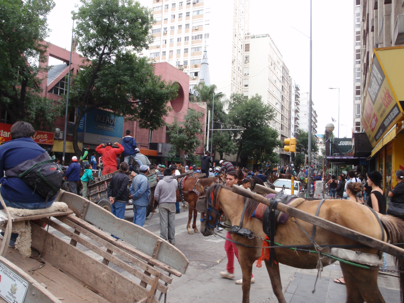 Caught in a protest march against increased police powers by folk working horses and carts through the city