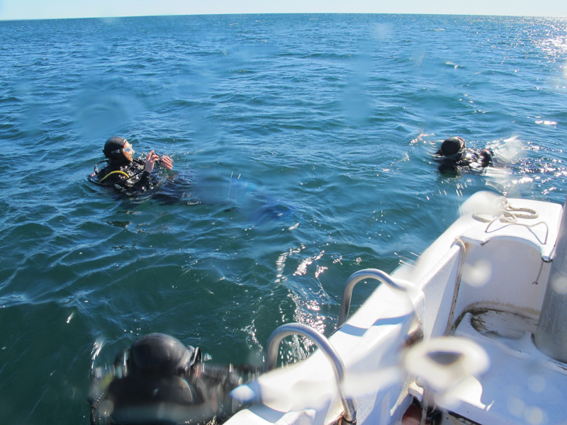 Surfacing after the dive, very cold but delighted!
