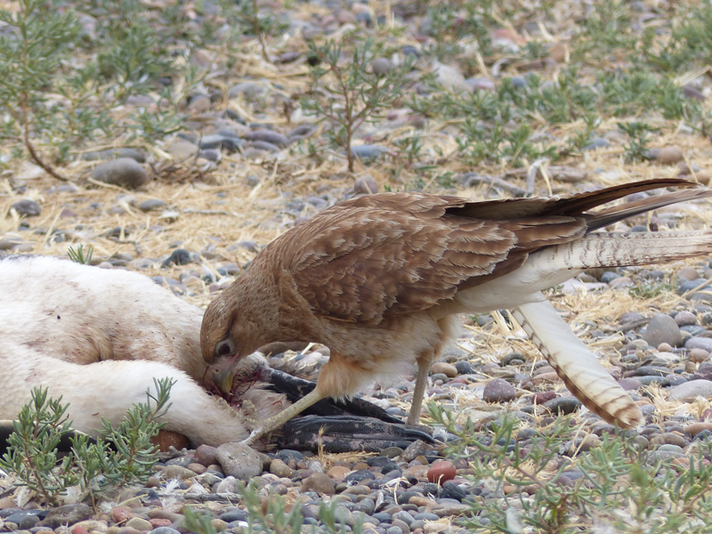 A kite makes a meal of a dead penguin