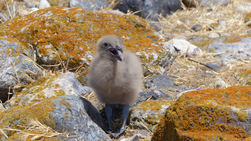 The Skuas had chicks of their own, helplessly wandering among the rocks, to keep safe