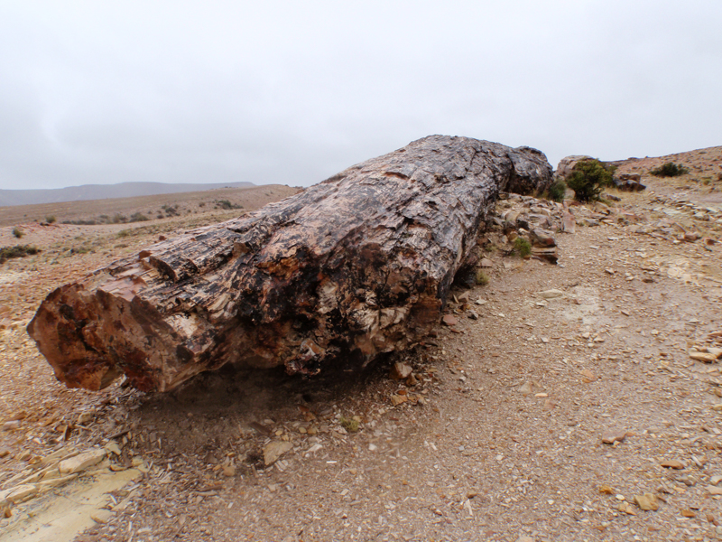 We were just able to see and appreciate the “petrified forest”, an area of fossilised trees, through the downpour