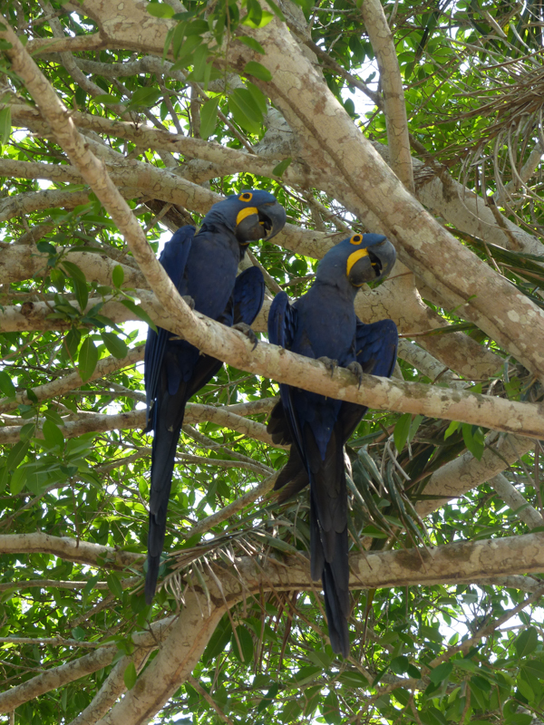 The pair of Blue Hyacinth Macaws that visited the tree above the van at Porto Jofre each morning to complain about the heat