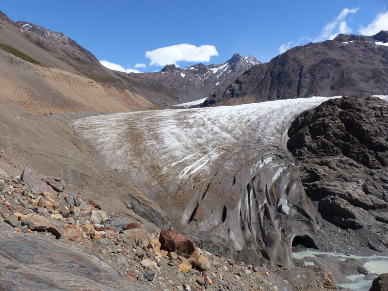 Our next obstacle – a walk across the end of glacier Río Túnel