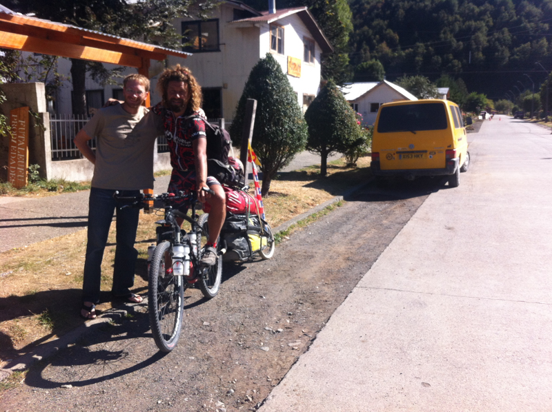 We saw Romain, with some temporary repairs to his bike, off in the morning in Futaleufu