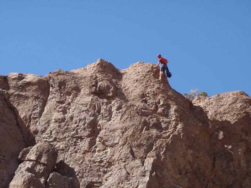 Bruce abseiling in to reclaim an abandoned piece of gear